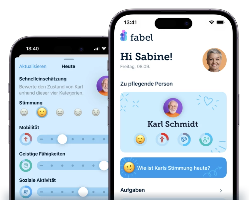 Pflege auf Distanz So unterstützt du deine Liebsten aus der Ferne Montag, 5. Aug., 2024 In einer immer vernetzteren Welt stehst du vielleicht vor der Herausforderung, Pflege auf Distanz zu organisieren. Ob durch räumliche Trennung oder berufliche Verpflichtungen – es gibt zahlreiche Gründe, warum du nicht immer vor Ort sein kannst. Doch keine Sorge, es gibt viele Möglichkeiten und Hilfsmittel, um die Pflege von entfernten Angehörigen erfolgreich zu gestalten. Hier sind einige Tipps und Strategien, wie du das meistern kannst. Bürokratische Angelegenheiten übernehmen Eine der größten Herausforderungen in der Pflege sind die bürokratischen Angelegenheiten. Die Kommunikation mit Krankenkassen, Versicherungen und anderen Institutionen kann viel Zeit und Energie kosten. Als Angehöriger auf Distanz kannst du hier effektiv unterstützen: Krankenkassenangelegenheiten regeln: Melde dich als Ansprechpartner bei der Krankenkasse deines Angehörigen, um alle wichtigen Informationen direkt zu erhalten und Anträge oder Formulare online oder per Post zu bearbeiten.Pflegeanträge stellen: Unterstütze bei der Beantragung von Pflegeleistungen, wie Pflegegeld oder Pflegedienstleistungen. Diese Aufgaben kannst du oft bequem per Telefon oder online erledigen.Dokumente verwalten: Nutze digitale Tools wie die fabel App, um wichtige Dokumente zentral zu sammeln und zu verwalten. So hast du jederzeit Zugriff darauf und kannst schnell handeln, wenn nötig. Organisatorische Aufgaben übernehmen Auch wenn du nicht physisch vor Ort sein kannst, gibt es viele organisatorische Aufgaben, die du übernehmen kannst, um den Alltag deines Pflegebedürftigen zu erleichtern: Arzttermine koordinieren: Vereinbare Arzttermine telefonisch oder online und plane sie so, dass sie für deinen Angehörigen bequem sind. Terminbestätigungen und Erinnerungen kannst du einfach in der fabel App festhalten.Einkäufe online erledigen: Nutze Online-Lieferdienste, um regelmäßig Lebensmittel und notwendige Haushaltsartikel zu bestellen. Dies spart deinem Angehörigen den Aufwand und stellt sicher, dass immer alles Notwendige im Haus ist. Pflegeteam aufstellen Ein starkes und verlässliches Netzwerk aus Familie, Freunden, Nachbarn und Alltagshelfern kann einen großen Unterschied machen. Hier sind einige Schritte, wie du ein effektives Pflegeteam aufstellen kannst: Rollen verteilen: Kläre, wer welche Aufgaben übernehmen kann. Manche können regelmäßig vorbeischauen, andere können für bestimmte Aufgaben wie Einkäufe oder Arztbesuche zuständig sein.Regelmäßige Updates: Halte das Pflegeteam über die fabel App auf dem Laufenden. So sind alle stets informiert und wissen, was erledigt werden muss.Profis einbeziehen: Ziehe professionelle Pflegekräfte oder Alltagshelfer hinzu, um sicherzustellen, dass alle Bereiche abgedeckt sind und dein Angehöriger bestmöglich versorgt wird. fabel App für die häusliche Pflege als Tool nutzen Technologie kann eine große Unterstützung bieten, insbesondere durch Apps, die den Pflegealltag erleichtern. Eine solche App ist die fabel App, die zahlreiche nützliche Funktionen bietet: 🗓️ Pflegeplan: Erstelle und verwalte Pflegepläne, Termine und Aufgabenlisten, die von allen Mitgliedern des Pflegeteams eingesehen und aktualisiert werden können.💬 Kommunikation: Halte über die App Kontakt zu Pflegekräften, Ärzten und anderen Beteiligten. So bleiben alle informiert und können schnell reagieren.📓 Dokumentation*: Führe ein digitales Pflegejournal, in dem alle wichtigen Informationen und Beobachtungen festgehalten werden. Dies hilft, den Überblick zu behalten und wichtige Details nicht zu vergessen.💡Pflegewissen: Nutze den umfangreichen Wissensbereich und erhalte wertvolle Pflege-Tipps und Informationen, die dir im Alltag helfen.🦸♀️ Alltagshelfer: Finde hilfreiche Dienstleistungen und Unterstützung in deiner Nähe, darunter z.B. Pflegedienste oder Hilfsmittel Anbieter, die dich im Alltag unterstützen können. fabel App für iOS oder Android laden General/Icons/icon-arrow-right Fazit Pflege auf Distanz erfordert Planung, Organisation und die richtige Nutzung von Ressourcen. Mit den genannten Tipps und Hilfsmitteln kannst du sicherstellen, dass dein Angehöriger gut versorgt ist, auch wenn du nicht immer vor Ort sein kannst. Moderne Technologien und ein starkes Netzwerk machen es möglich, die Pflege auf Distanz effizient und liebevoll zu gestalten.